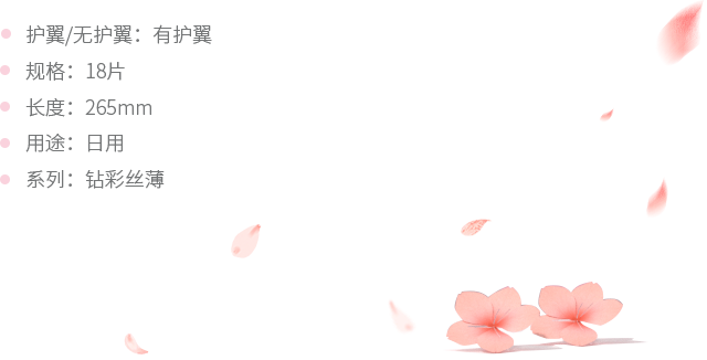 鉆彩絲薄265mm18片棉柔日用加長衛(wèi)生巾